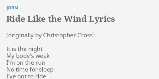 Your Weekend Jam Ride Like The Wind By Christopher Cross - It is the night my body's weak i'm on the run no time for sleep i've got to ride ride like the wind to be free again and i've got such a long way to go to i was born the son of a lawless man always spoke my mind with a gun in my hand lived nine lives gunned down ten gonna ride like the wind accused.